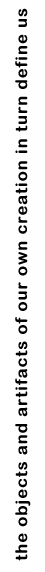 she focused on the phenomenon that the objects and artifacts of our own creation in turn define us. In her speech, she addressed the question of how our lives are affected when "the first objects we look upon" are representations of ourselves and others. Turkle made a basic distinction between "objects you think with" and "objects you design with" and recounted the experiences of people who use computational objects for designing.